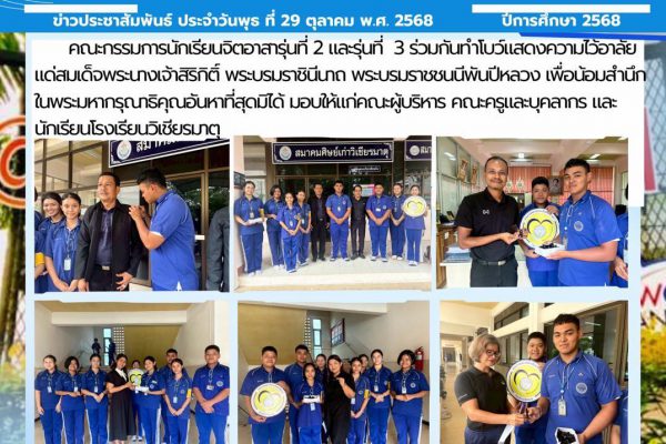 โรงเรียนวิเชียรมาตุ ดำเนินการจัดประชุมผู้ปกครองนักเรียน ระดับชั้นมัธยมศึกษาปีที่ 3 และ 6 ภาคเรียนที่ 2 ปีการศึกษา 2568 ในการนี้ นายศักดา ไพสมบูรณ์ ผู้อำนวยการโรงเรียนวิเชียรมาตุ พร้อมด้วยคณะผู้บริหาร หัวหน้าระดับ รองหัวหน้าระดับ และเลขานุการระดับ ร่วมยืนสงบนิ่ง เพื่อถวายอาลัย และน้อมสำนึกในพระมหากรุณาธิคุณอันหาที่สุดมิได้ ของสมเด็จพระนางเจ้าสิริกิติ์ พระบรมราชินีนาถ พระบรมราชชนนีพันปีหลวง รวมทั้งมอบเกียรติบัตรแก่นักเรียนที่มีผลการเรียนดีเด่น ภาคเรียนที่ 1 ปีการศึกษา 2568 เกรดเฉลี่ยรวมตั้งแต่ 3.75 ขึ้นไป จากนั้นผู้อำนวยการโรงเรียนและรองผู้อำนวยการโรงเรียนทั้ง 4 ฝ่าย พบผู้ปกครองนักเรียน รายงานผลการขับเคลื่อนและความก้าวหน้าในการพัฒนาสถานศึกษา ชี้แจงแนวทางการดำเนินงานของโรงเรียน พร้อมทั้งเปิดโอกาสให้ผู้ปกครองร่วมแสดงความคิดเห็น ณ หอประชุมโรงเรียนวิเชียรมาตุ จากนั้นผู้ปกครองพบครูที่ปรึกษาในกิจกรรม (Classroom Meeting) เพื่อสร้างความร่วมมือในการดูแล ส่งเสริม และพัฒนานักเรียนอย่างรอบด้าน ทั้งด้านการเรียน การประพฤติ และคุณลักษณะอันพึงประสงค์ โดยเปิดโอกาสให้ผู้ปกครองและครูได้แลกเปลี่ยนข้อมูล ความคิดเห็น และแนวทางการช่วยเหลือนักเรียนให้เติบโตอย่างมีคุณภาพและมีความสุข