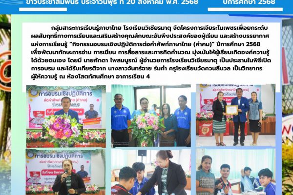 นางอัมพร สงวนศักดิ์ รองผู้อำนวยการกลุ่มบริหารงานวิชาการ เป็นประธานในพิธีเปิด การอบรบการเรียนรู้ AI Essentials สำหรับผู้บริหาร ครู บุคลากร โรงเรียนคุณภาพ เพื่อการ Upskill Reskill ในการนำ AI มาเพื่อการบริหารจัดการและการจัดการเรียนการสอนในโรงเรียน สังกัด สพม.ตรัง กระบี่ โดยมี ครูชฎาพร เชียรศรี ครูณฐนนท์ เหมไพบูลย์ และครูนงลักษณ์ ชูยังด้วงโยธา เป็นวิทยากรให้ความรู้ ณ ห้องโสตทัศนศึกษา อาคารเรียน 4