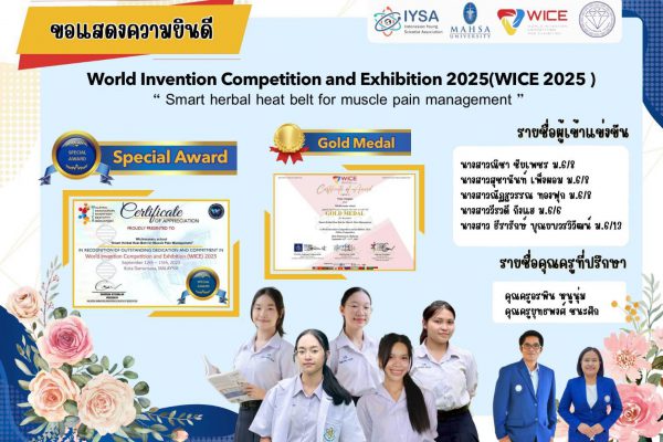 ยินดีกับลูกแม่แก้ว ได้รับรางวัล Special Award และ Gold Medal โครงงานนานาชาติ WICE 2025