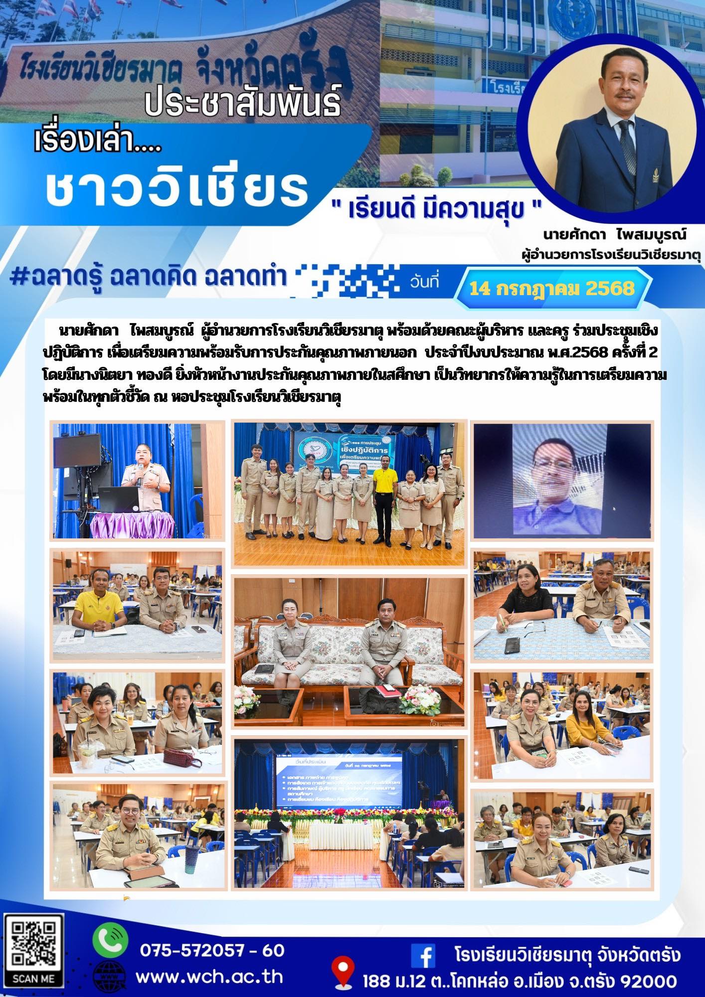 นายศักดา ไพสมบูรณ์ ผู้อำนวยการโรงเรียนวิเชียรมาตุ พร้อมด้วยคณะผู้บริหาร และครู ร่วมประชุมเชิงปฏิบัติการ เพื่อเตรียมความพร้อมรับการประกันคุณภาพภายนอก ประจำปีงบประมาณ พ.ศ.2568 ครั้งที่ 2 โดยมีนางนิตยา ทองดียิ่งหัวหน้างานประกันคุณภาพภายในสถานศึกษา เป็นวิทยากรให้ความรู้ในการเตรียมความพร้อมในทุกตัวชี้วัด ณ หอประชุมโรงเรียนวิเชียรมาตุ