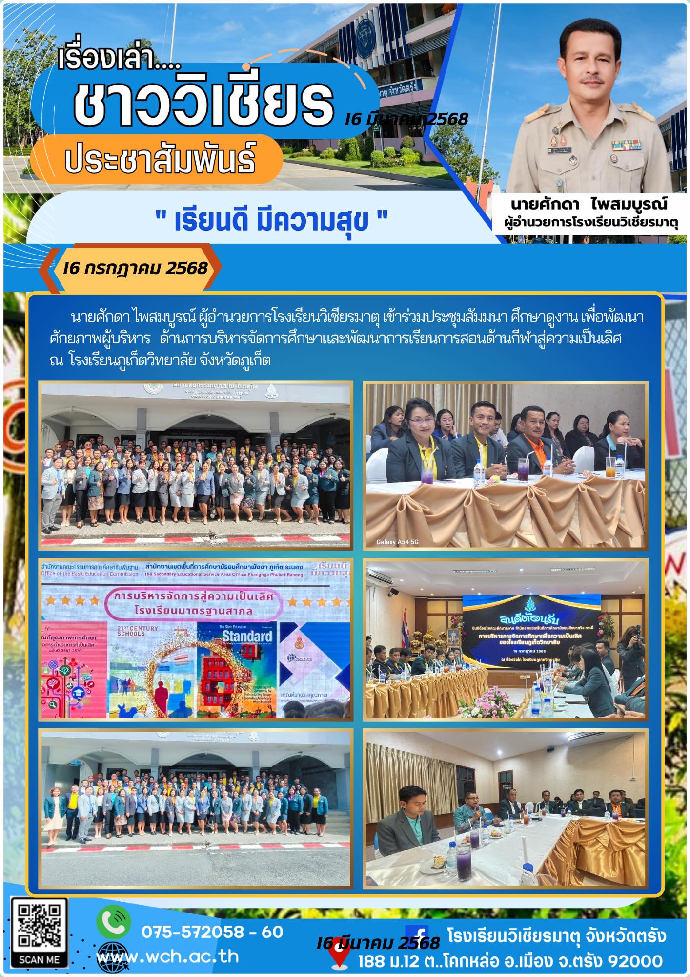 นายศักดา ไพสมบูรณ์ ผู้อำนวยการโรงเรียนวิเชียรมาตุ เข้าร่วมประชุมสัมมนา ศึกษาดูงาน เพื่อพัฒนาศักยภาพผู้บริหาร ด้านการบริหารจัดการศึกษาและพัฒนาการเรียนการสอนด้านกีฬาสู่ความเป็นเลิศ ณ โรงเรียนภูเก็ตวิทยาลัย จังหวัดภูเก็ต