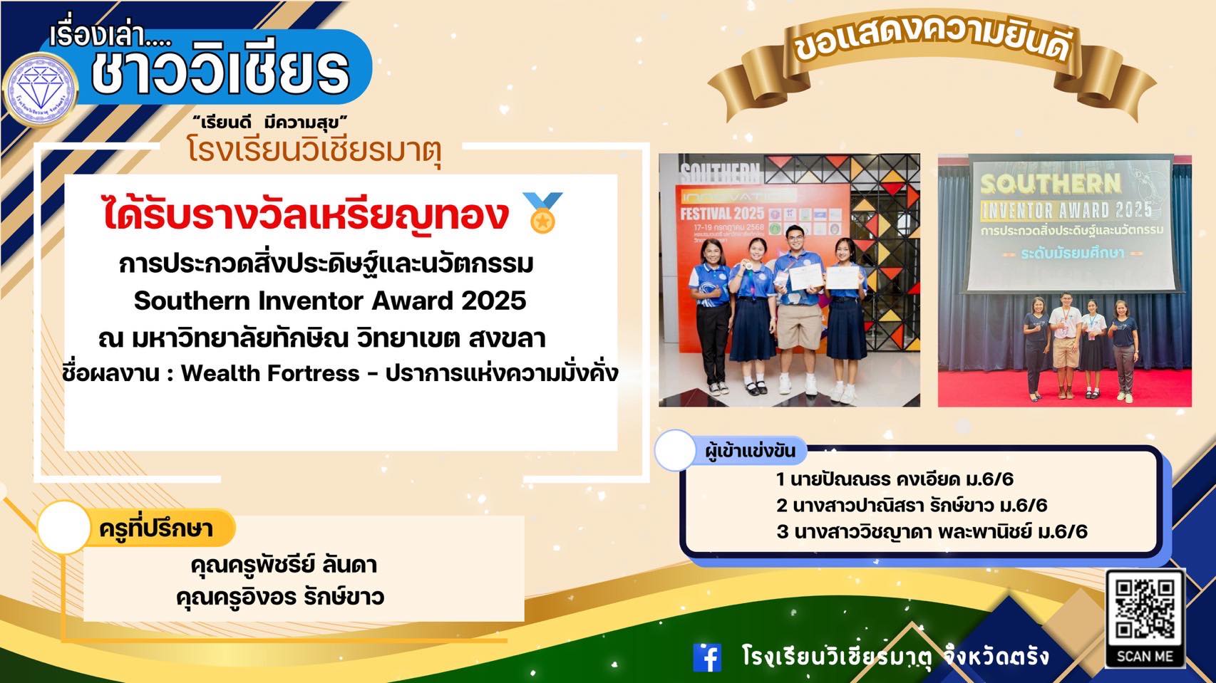 ขอแสดงความยินดี ได้รับรางวัลเหรียญทอง การประกวดสิ่งประดิษฐ์และนวัตกรรม