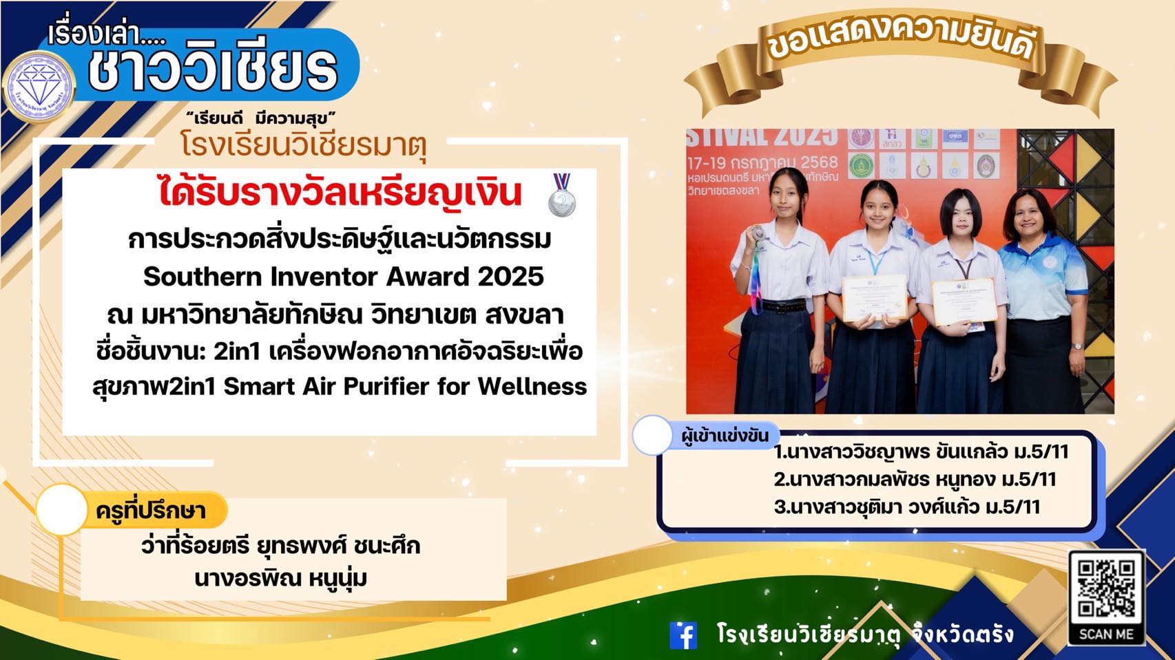 ได้รับรางวัลเหรียญเงิน การประกวดสิ่งประดิษฐ์และนวัตกรรม Southern Inventor Award 2025 ณ มหาวิทยาลัยทักษิณ วิทยาเขต สงขลา