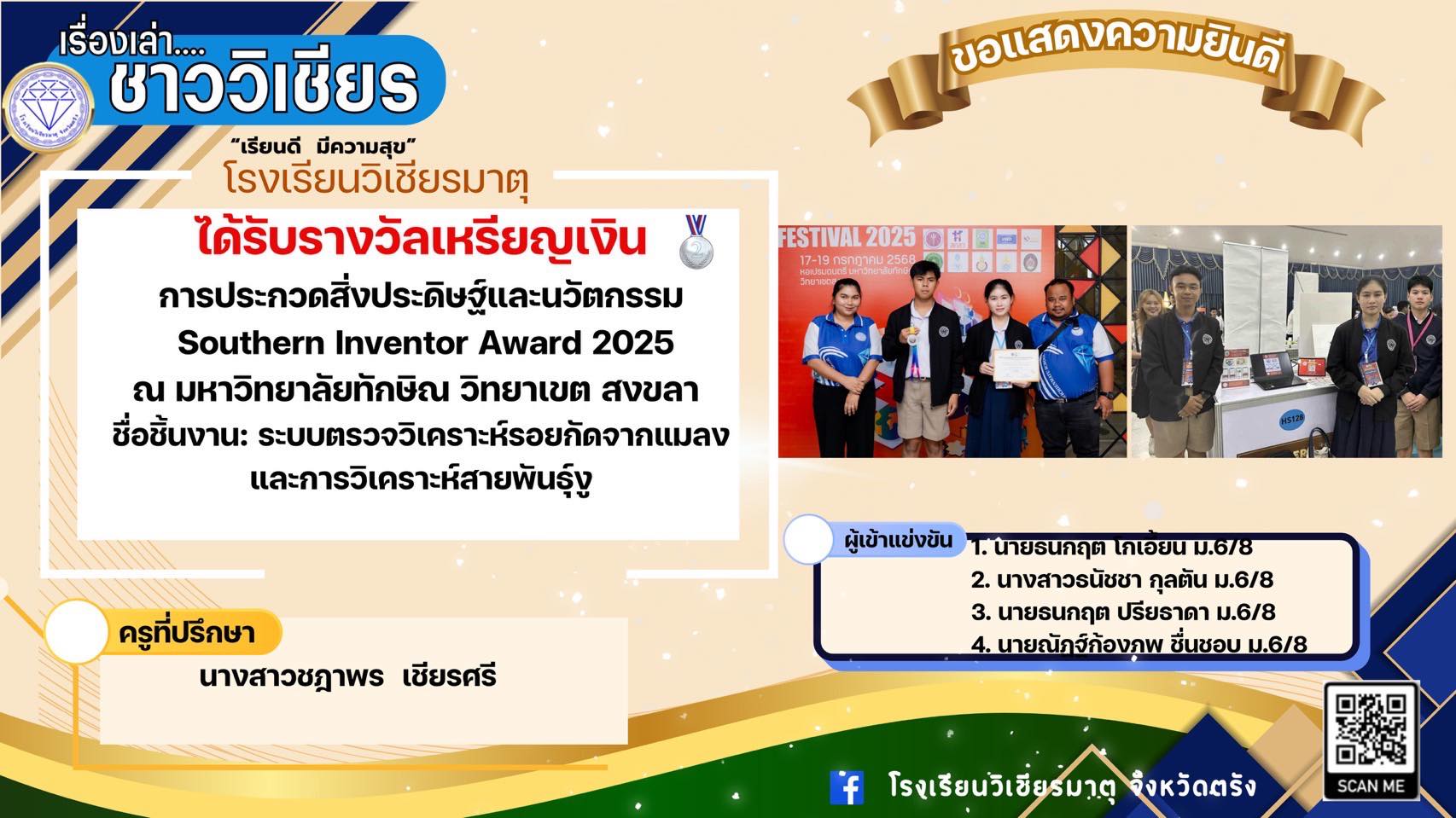 การเข้าร่วมการแข่งขัน Southern Inventor Award 2025 ได้รับรางวัลเหรียญเงิน