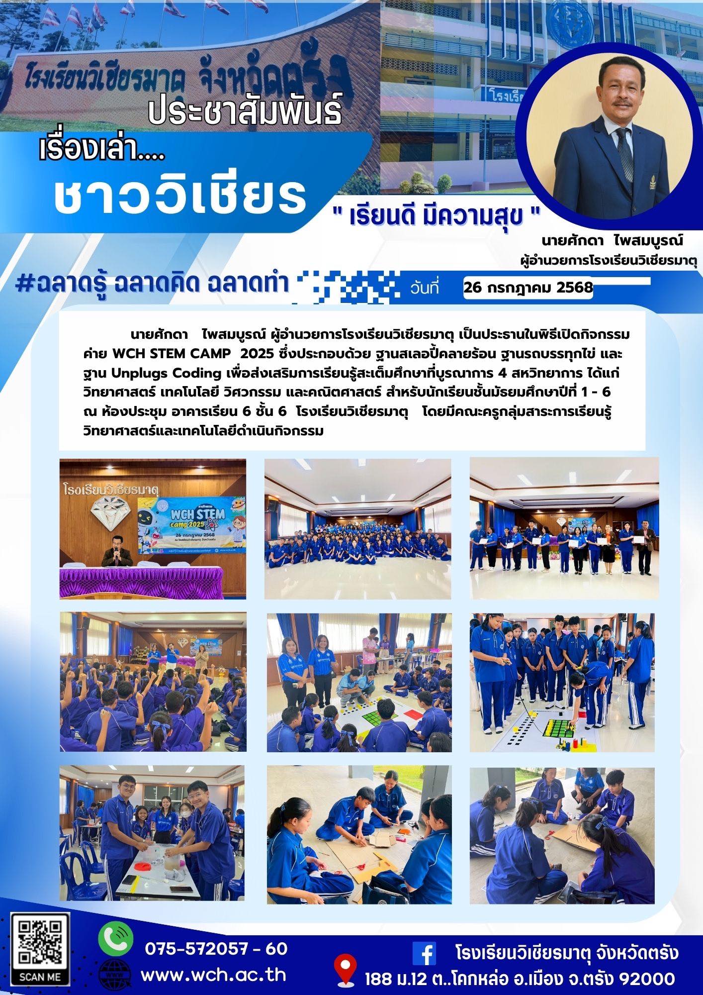 กลุ่มสาระการเรียนรู้วิทยาศาสตร์และเทคโนโลยี จัดกิจกรรม อบรมเชิงปฏิบัติการ WCH STEM CAMP 2025 สำหรับ ม.1-ม.6 โรงเรียนวิเชียรมาตุ