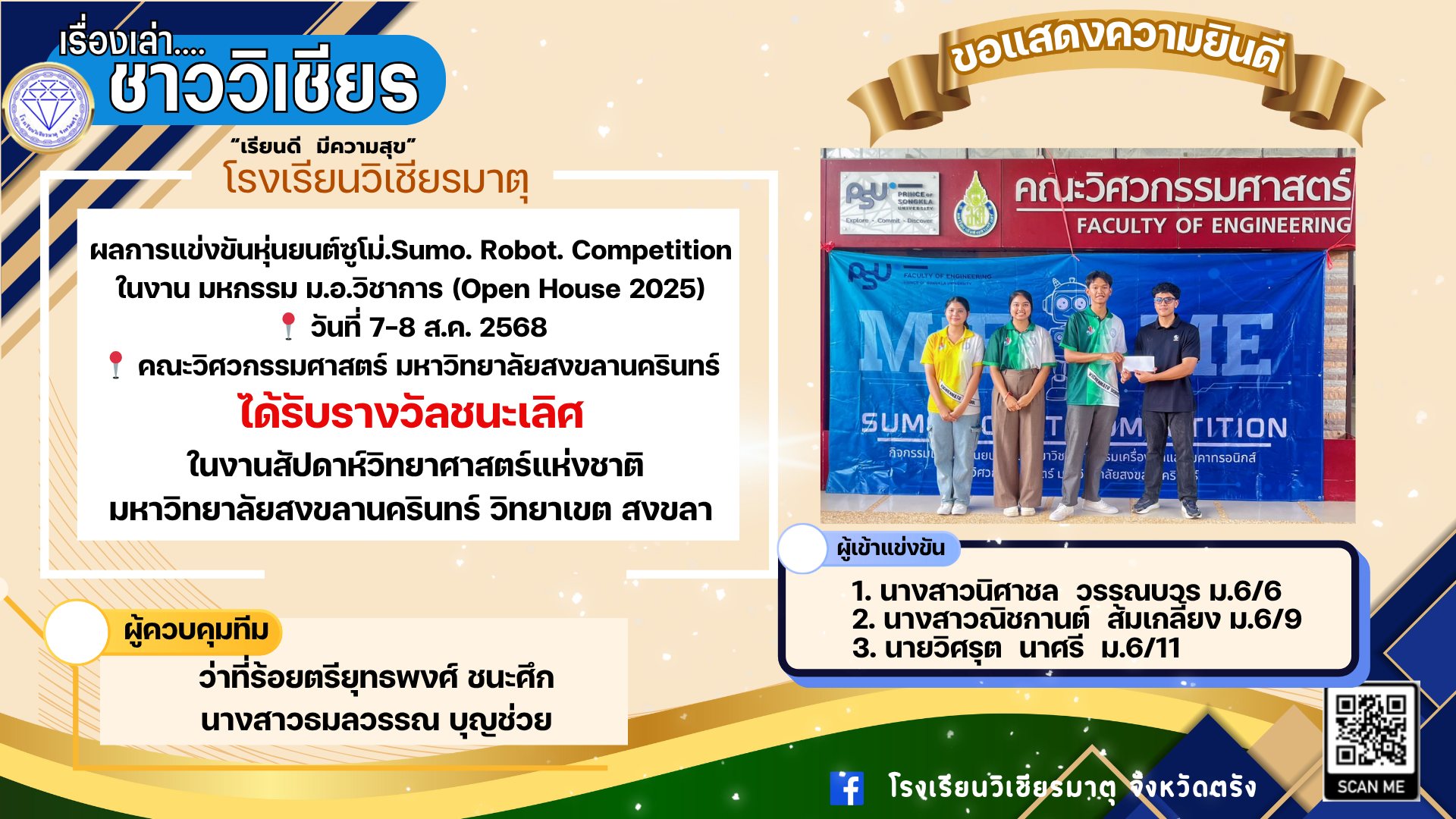 ผลการแข่งขันหุ่นยนต์ซูโม่.Sumo. Robot. Competition ในงาน มหกรรม ม.อ.วิชาการ (Open House 2025) วันที่ 7–8 ส.ค. 2568 คณะวิศวกรรมศาสตร์ มหาวิทยาลัยสงขลานครินทร์