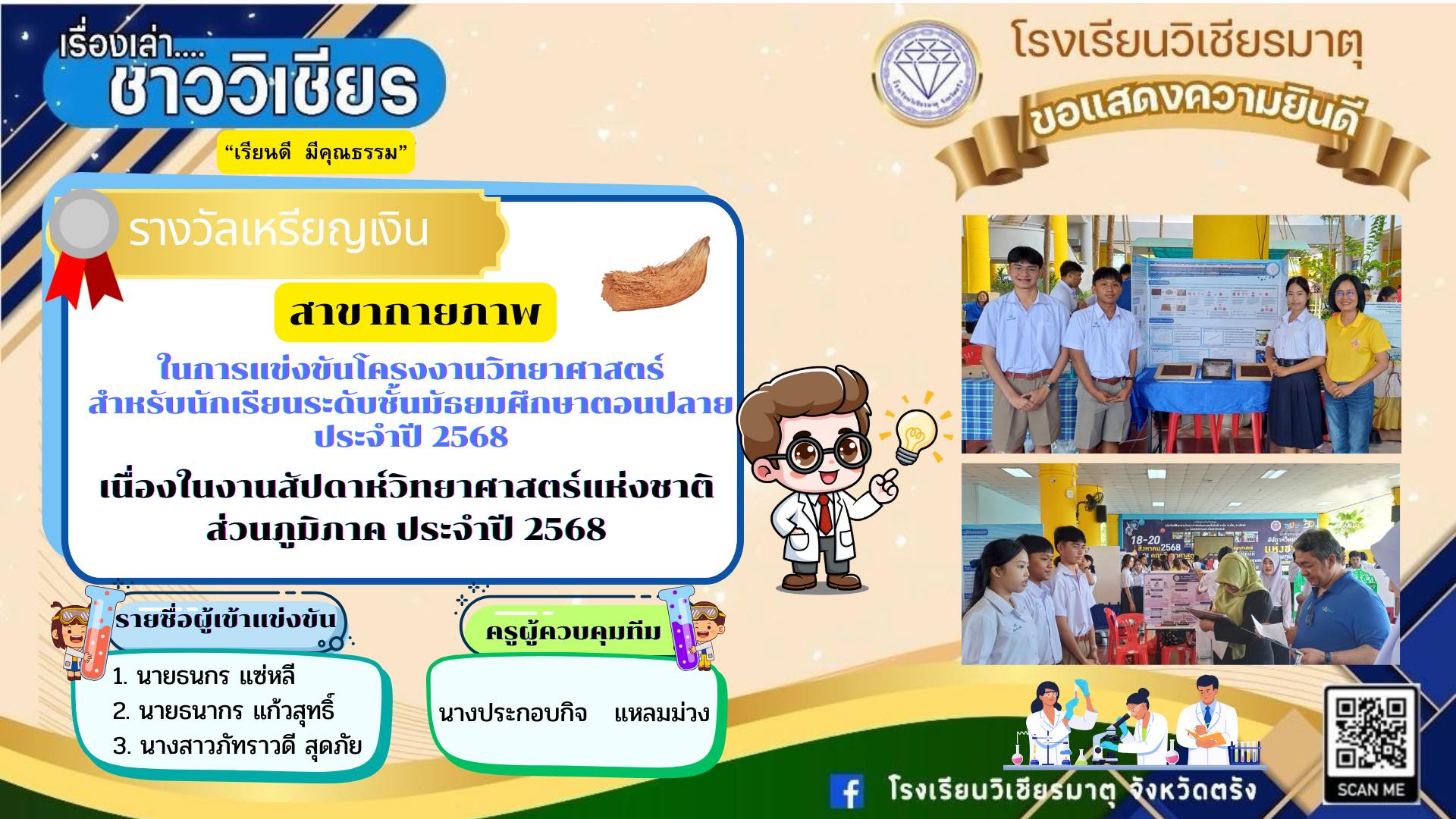 ขอแสดงความยินดีกับนักเรียน ที่ได้รับรางวัลเหรียญเงิน