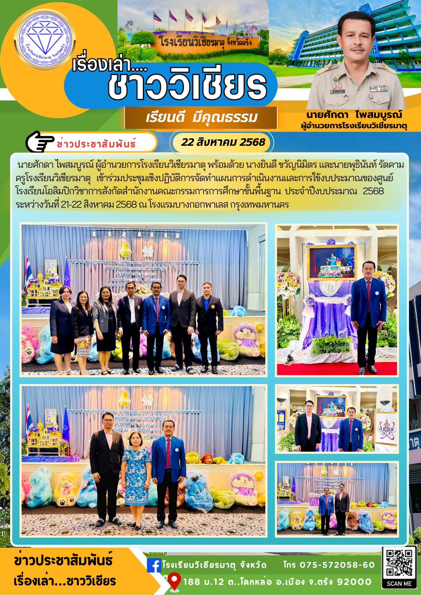นายศักดา ไพสมบูรณ์ ผู้อำนวยการโรงเรียนวิเชียรมาตุ พร้อมด้วย นางยินดี ขวัญนิมิตร และนายพุธินันท์ รัตคาม ครูโรงเรียนวิเชียรมาตุ เข้าร่วมประชุมเชิงปฏิบัติการจัดทำแผนการดำเนินงานและการใข้งบประมาณของศูนย์โรงเรียนโอลิมปิกวิชาการ
