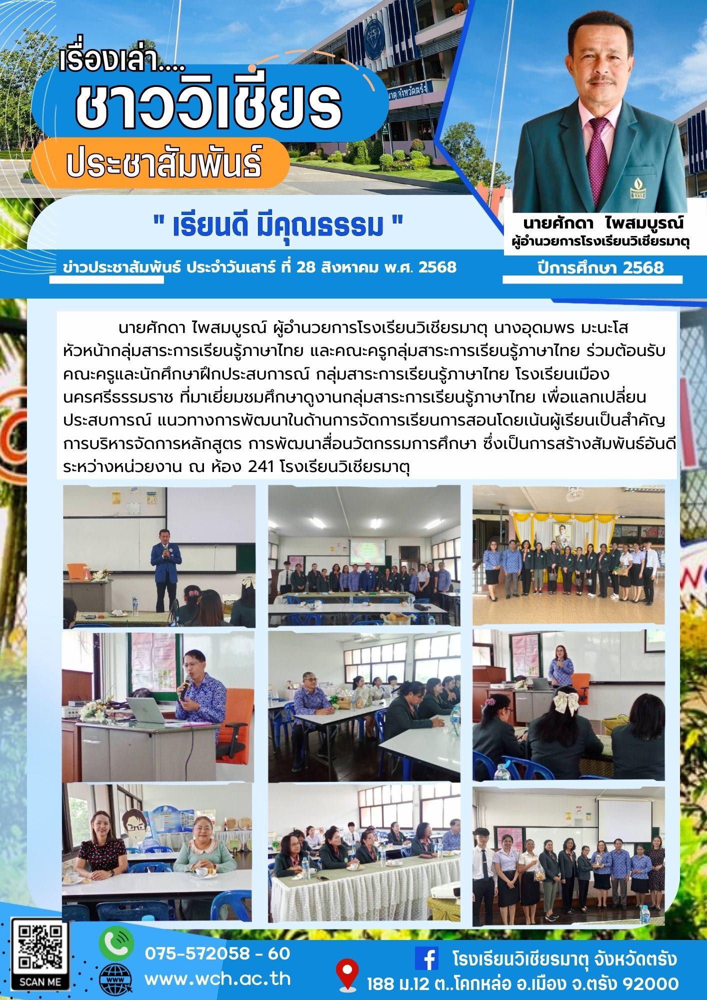 ต้อนรับคณะครูและนักศึกษาฝึกประสบการณ์ กลุ่มสาระการเรียนรู้ภาษาไทย โรงเรียนเมืองนครศรีธรรมราช