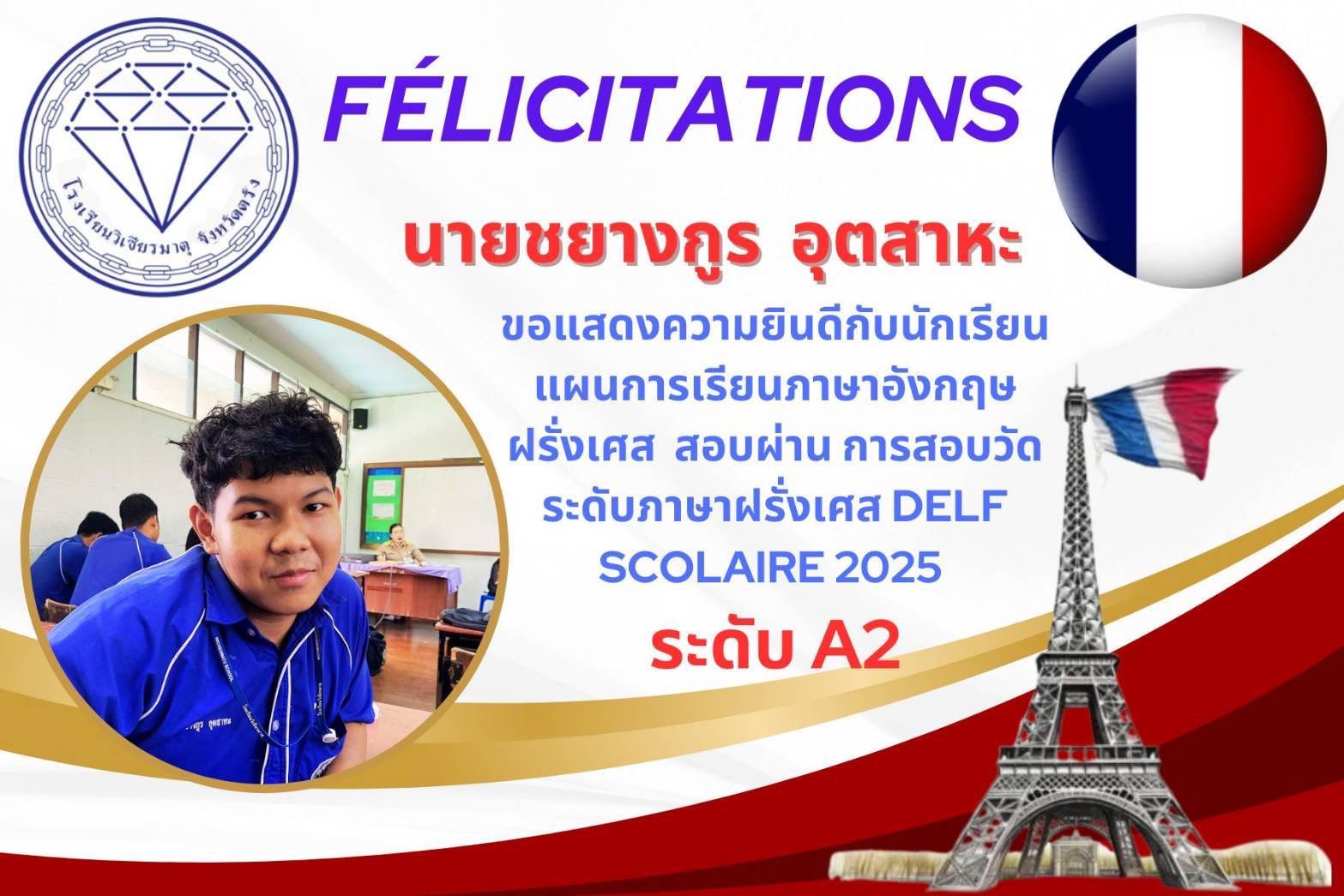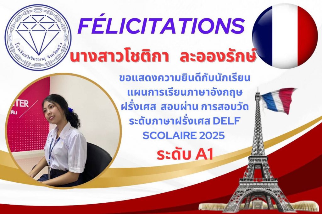 เพชรน้ำหนึ่งขอแสดงความยินดี admin1 week ago1 week ago01 mins Félicitations ขอแสดงความยินดีกับนักเรียนแผนการเรียนภาษาอังกฤษ-ฝรั่งเศส สอบผ่าน การสอบวัดระดับภาษาฝรั่งเศส DELF Scolaire 2025 ระดับ A21.นายชยางกูร อุตสาหะ ม.6/32.นางสาวณัฏฐณิชา จันทร์โต ม.6/3 ระดับ A1นางสาวโชติกา ละอองรักษ์ ม.6/3 FacebookFacebookXXLINELine Post navigation Previous: กิจกรรม อนุรักษ์ภูมิปัญญา เพาะกล้าคุณธรรม น้อมนำความพอเพียงNext: ขอแสดงความยินดี