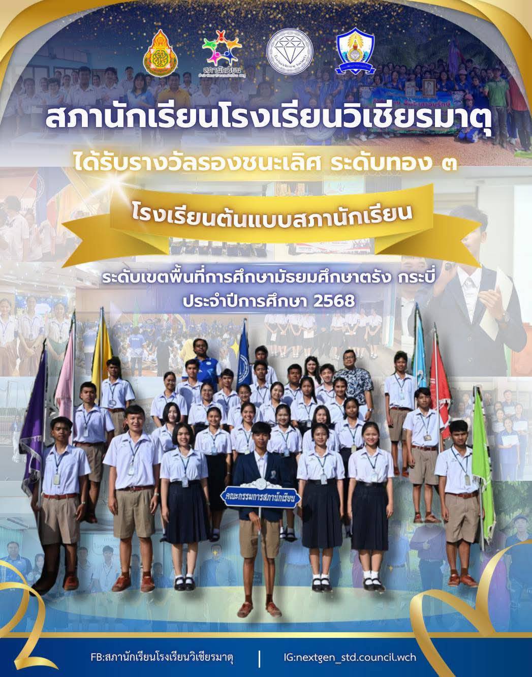 ขอแสดงความยินดีกับสภานักเรียนโรงเรียนวิเชียรมาตุ ได้รับรางวัลรองชนะเลิศ ระดับทอง3 การแข่งขันโรงเรียนต้นแบบสภานักเรียน ประจำปี 2568 ระดับเขตพื้นที่การศึกษามัธยมศึกษาตรัง กระบี่