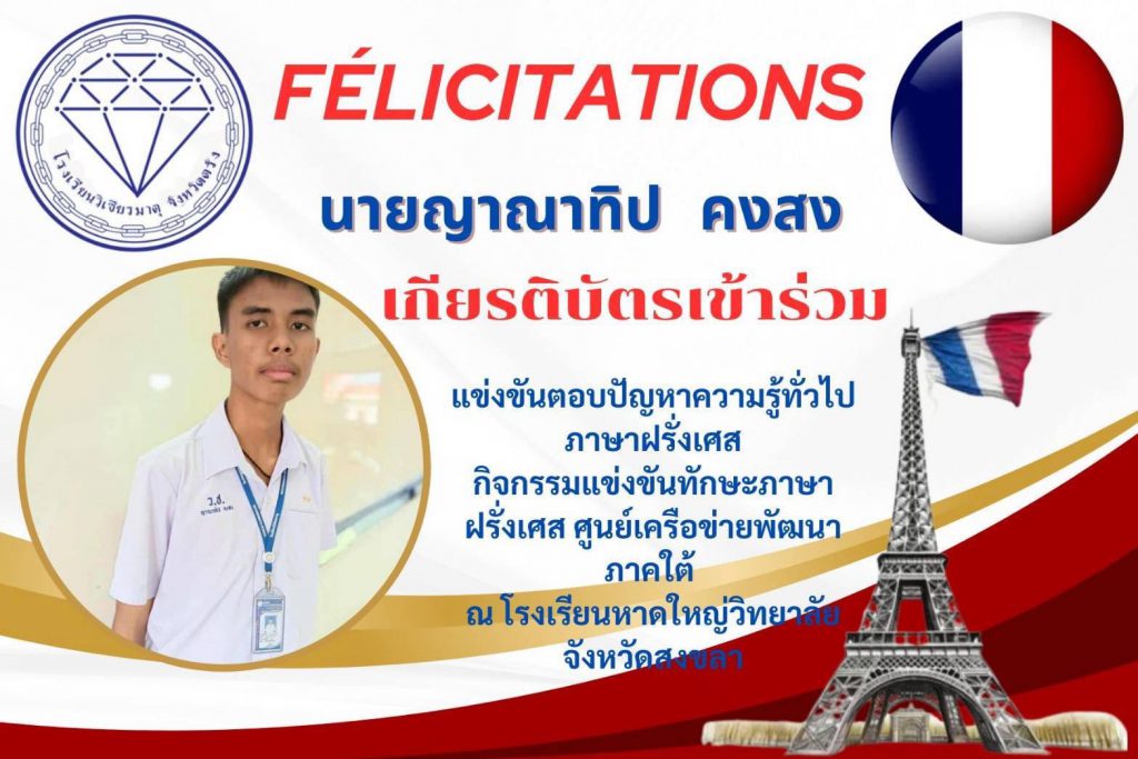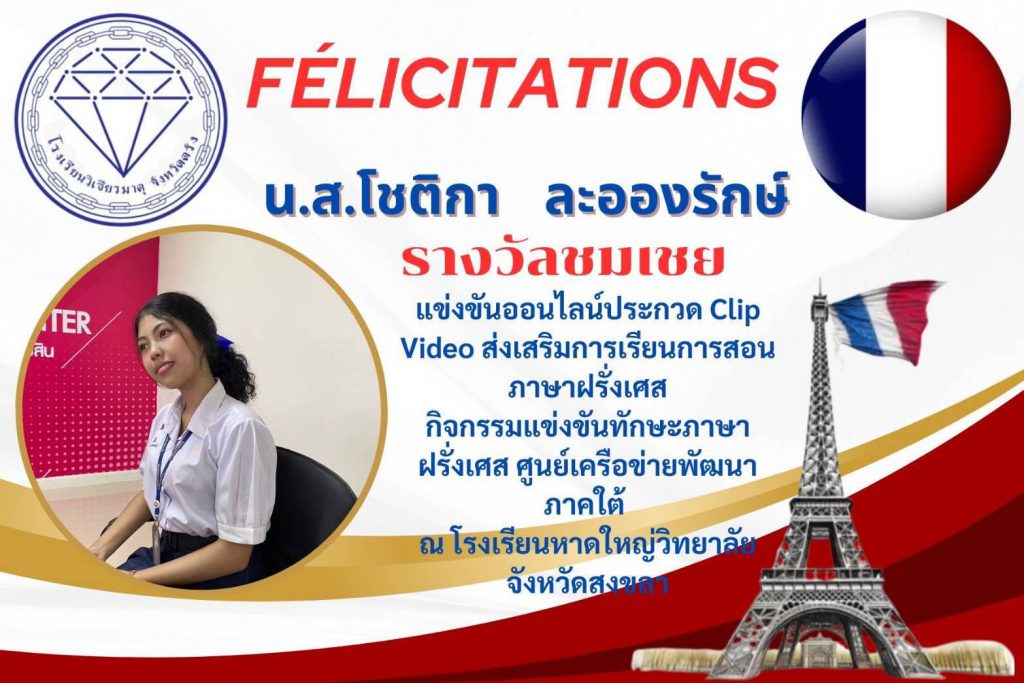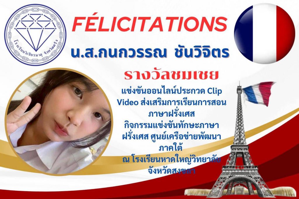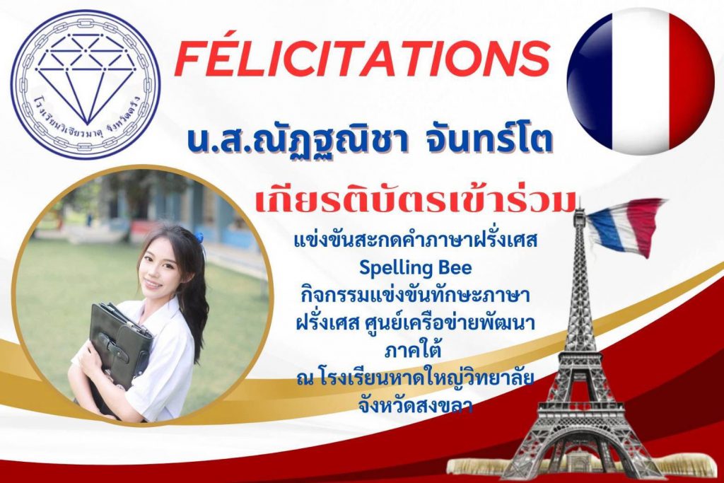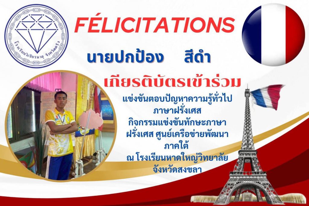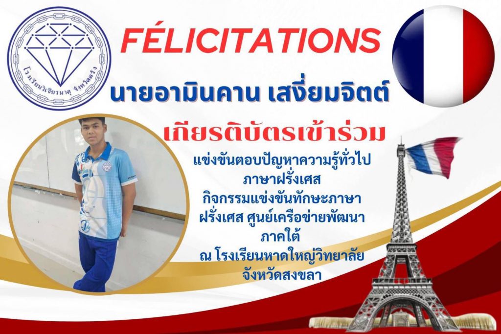 เพชรน้ำหนึ่งขอแสดงความยินดี admin6 days ago6 days ago01 mins กิจกรรมแข่งขันทักษะภาษาฝรั่งเศส ระดับภาคใต้ ศูนย์เครือข่ายพัฒนาการเรียนการสอนภาษาฝรั่งเศสภาคใต้ ณ โรงเรียนหาดใหญ่วิทยาลัย จังหวัดสงขลา FacebookFacebookXXLINELine Post navigation Previous: พิธีเปิดการแข่งขัน We Are The Champions ส.บ.ม.ท. คัพ ครั้งที่ 1Next: ต้อนรับคณะครูจากโรงเรียนสุราษฎร์พิทยา ในการเข้าศึกษาดูงานประกันคุณภาพภายในสถานศึกษา