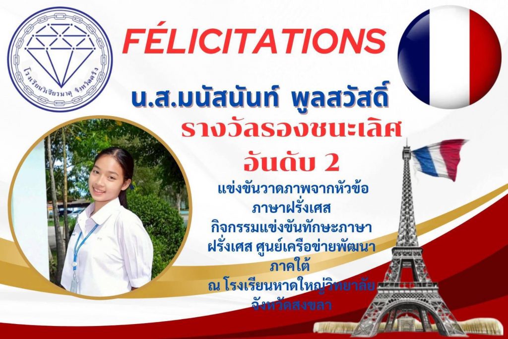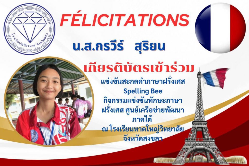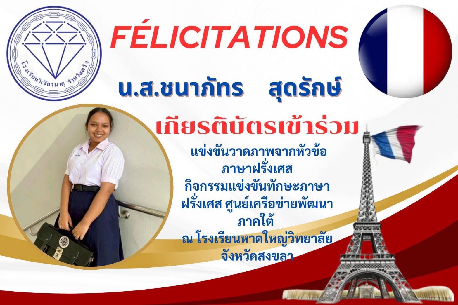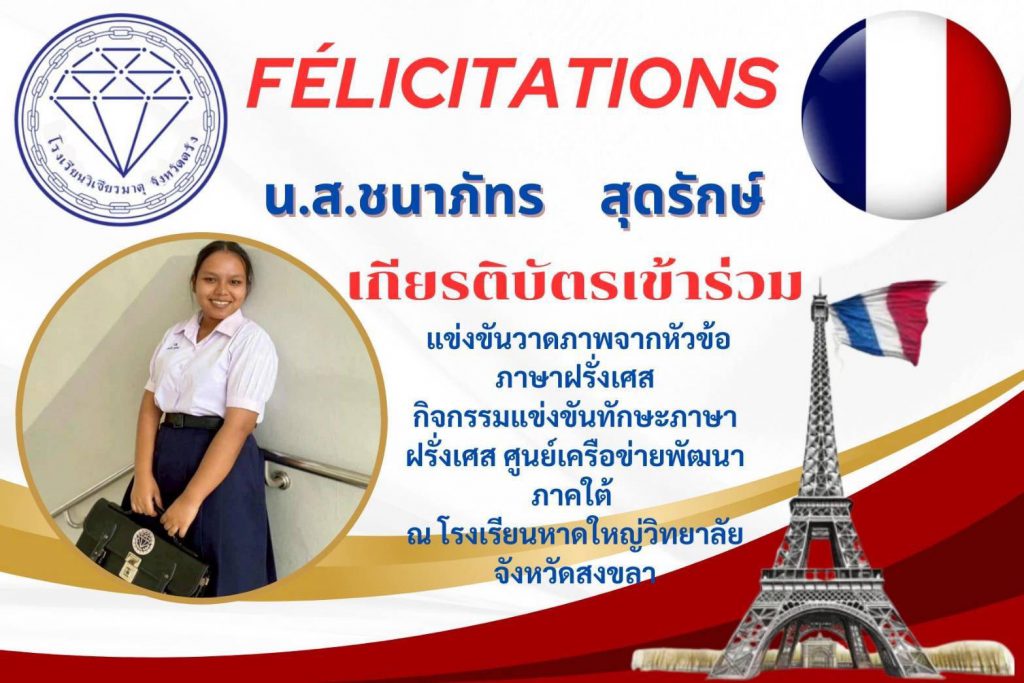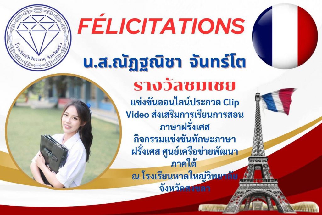 เพชรน้ำหนึ่งขอแสดงความยินดี admin6 days ago6 days ago01 mins กิจกรรมแข่งขันทักษะภาษาฝรั่งเศส ระดับภาคใต้ ศูนย์เครือข่ายพัฒนาการเรียนการสอนภาษาฝรั่งเศสภาคใต้ ณ โรงเรียนหาดใหญ่วิทยาลัย จังหวัดสงขลา FacebookFacebookXXLINELine Post navigation Previous: พิธีเปิดการแข่งขัน We Are The Champions ส.บ.ม.ท. คัพ ครั้งที่ 1Next: ต้อนรับคณะครูจากโรงเรียนสุราษฎร์พิทยา ในการเข้าศึกษาดูงานประกันคุณภาพภายในสถานศึกษา