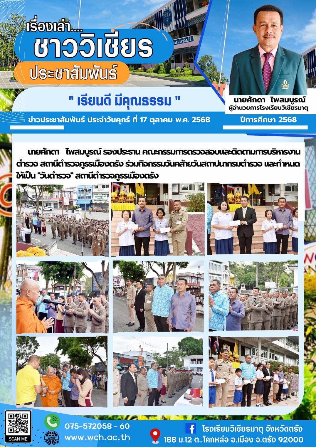 นายศักดา ไพสมบูรณ์ รองประธาน คณะกรรมการตรวจสอบและติดตามการบริหารงานตำรวจ สถานีตำรวจภูธรเมืองตรัง ร่วมกิจกรรมวันคล้ายวันสถาปนากรมตำรวจ และกำหนดให้เป็น “วันตำรวจ” สถานีตำรวจภูธรเมืองตรัง