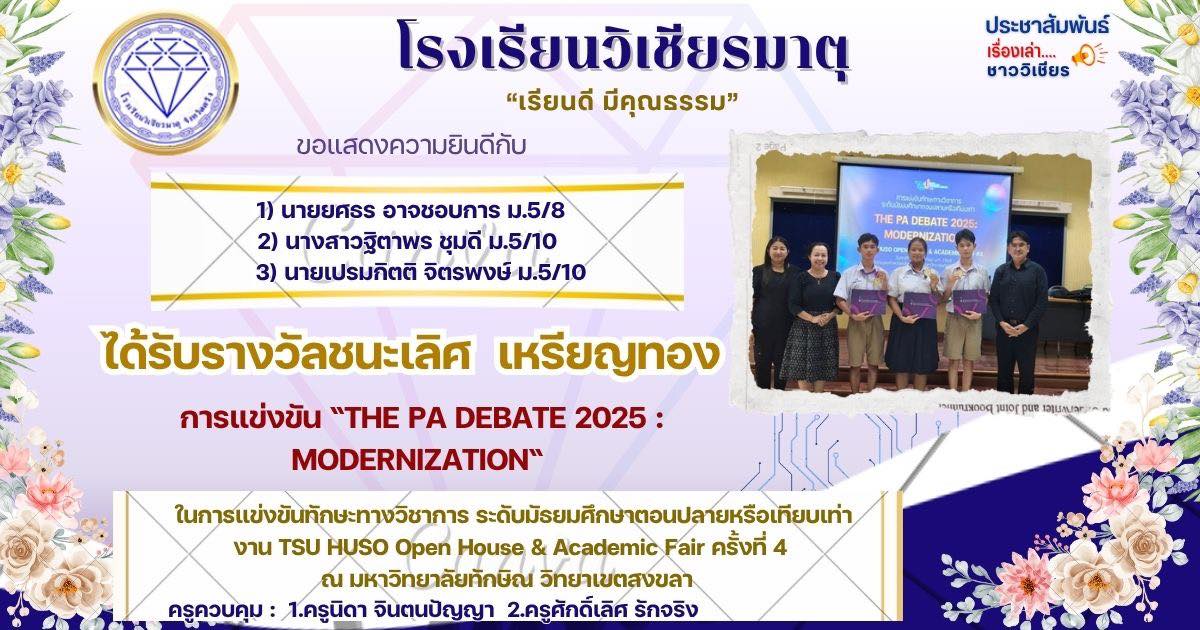 ได้รับรางวัลชนะเลิศ เหรียญทอง การแข่งขัน “THE PA DEBATE2025 : MODERNIZATION“