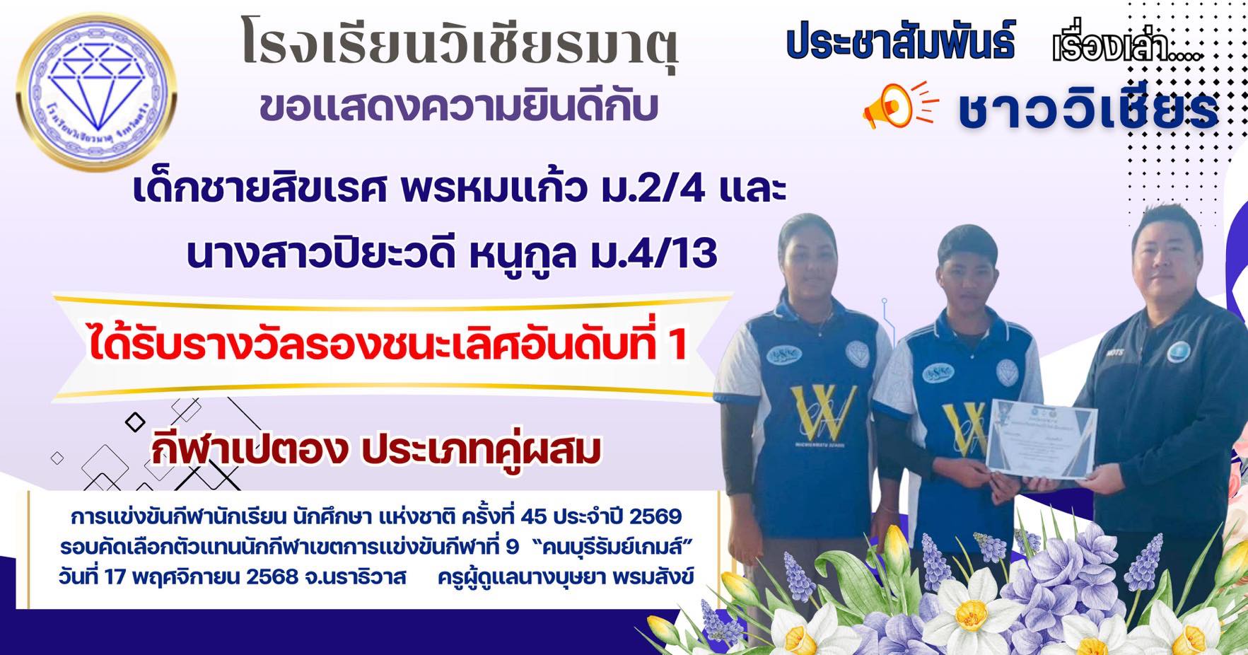 ได้รับรางวัลรองชนะเลิศอันดับ1 การแข่งขันกีฬานักเรียน นักศึกษา แห่งชาติ ครั้งที่ 45 ประจำปี 2569