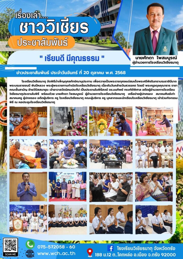 โรงเรียนวิเชียรมาตุ จัดพิธีบำเพ็ญกุศลทักษิณานุประทาน เพื่อถวายเป็นพระราชกุศลแด่สมเด็จพระศรีพัชรินทราบรมราชินีนาถ พระบรมราชชนนี พันปีหลวง พระผู้พระราชทานกำเนิดโรงเรียนวิเชียรมาตุ เนื่องในวันคล้ายวันสวรรคต โดยมี พระครูอดุลคุณาธาร ราชาคณะชั้นสามัญ ฝ่ายวิปัสสนาธุระ เจ้าอาวาสวัดนิคมประทีป เป็นประธานในพิธีสงฆ์ ดร.มนทิพย์ ทรงกิติพิศาล อดีตผู้อำนวยการโรงเรียนวิเชียรมาตุประธานในพิธี พร้อมด้วย นายศักดา ไพสมบูรณ์ ผู้อำนวยการโรงเรียนวิเชียรมาตุ เครือข่ายผู้ปกครอง สมาคมศิษย์เก่า สมาคมครู ผู้ปกครอง อดีตผู้บริหาร ครู โรงเรียนวิเชียรมาตุ คณะผู้บริหาร ครู บุคลากรและนักเรียนโรงเรียนวิเชียรมาตุ เข้าร่วมกิจกรรมพิธี ณ หอประชุมโรงเรียนวิเชียรมาตุ