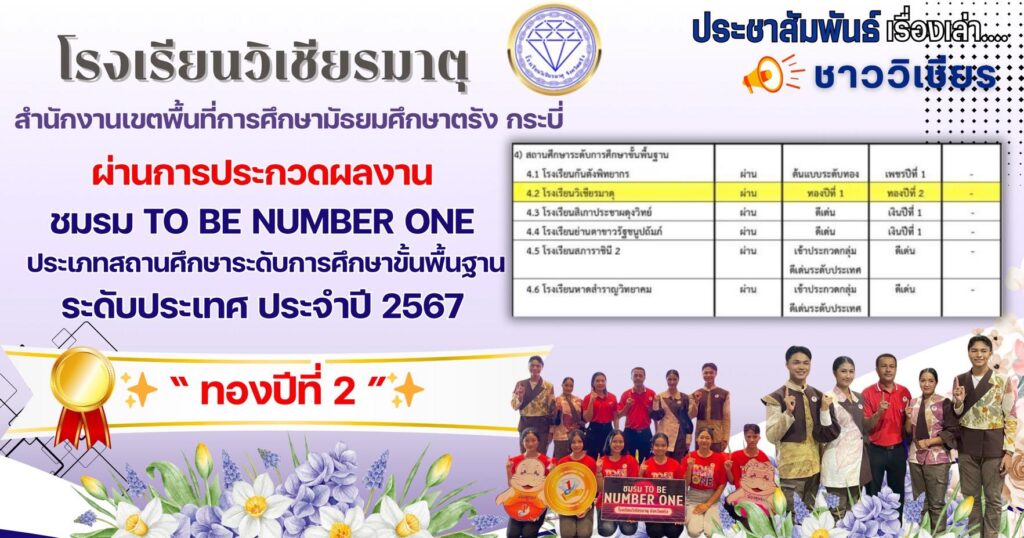 ชมรม TO BE NUMBER ONE ประเภทสถานศึกษาระดับการศึกษาขั้นพื้นฐาน ระดับประเทศ ประจำปี 2567 “ทองปีที่2”