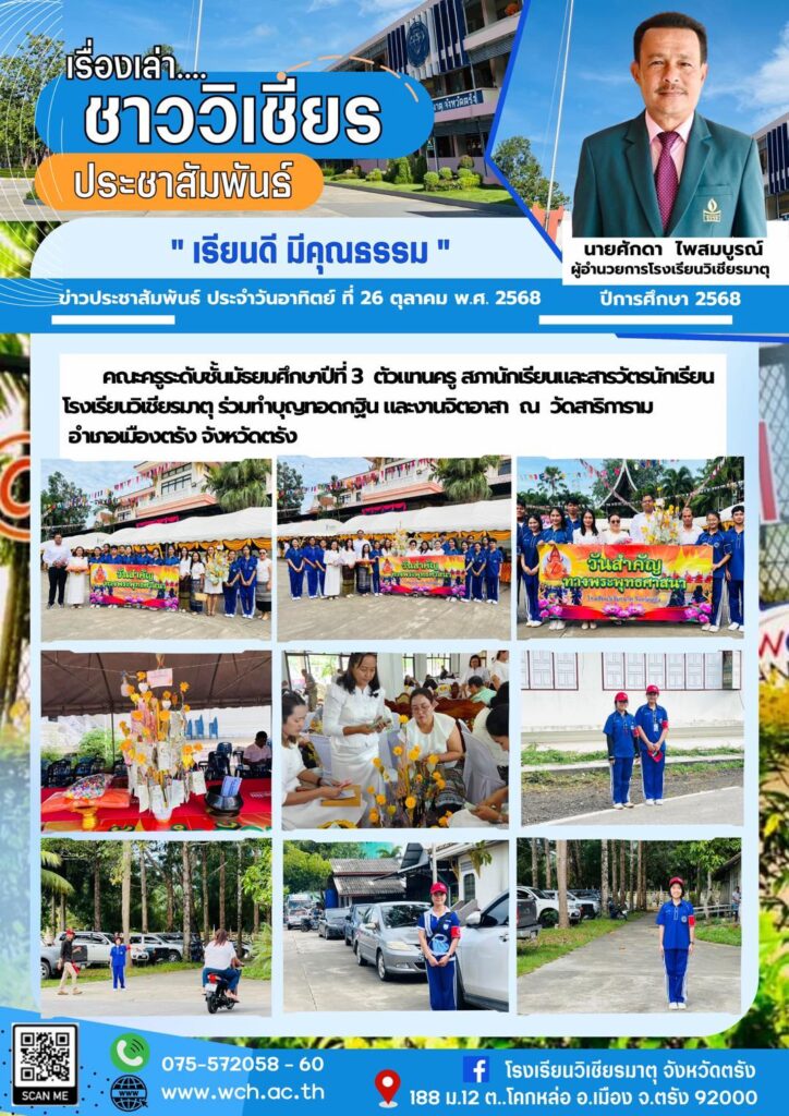 คณะครูระดับชั้นมัธยมศึกษาปีที่ 3 ตัวแทนครู สภานักเรียนและสารวัตรนักเรียน โรงเรียนวิเชียรมาตุ ร่วมทำบุญทอดกฐิน และงานจิตอาสา ณ วัดสาริการาม อำเภอเมืองตรัง จังหวัดตรัง