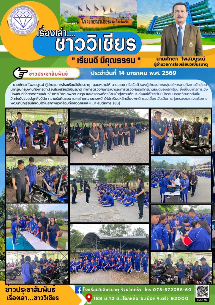 นายศักดา ไพสมบูรณ์ ผู้อำนวยการโรงเรียนวิเชียรมาตุ มอบหมายให้ นายเอนก ศรีสวัสดิ์ รองผู้อำนวยการกลุ่มบริหารงานกิจการนักเรียน นำครูในกลุ่มงานกิจการนักเรียนโรงเรียนวิเชียรมาตุ ทำการตรวจค้นกระเป๋าและการตรวจค้นรถจักรยานยนต์ของนักเรียน ซึ่งเป็นมาตรการเชิงป้องกันที่ช่วยลดความเสี่ยงในการนำยาเสพติด อาวุธ และสิ่งของต้องห้ามเข้าสู่สถานศึกษา ส่งผลให้โรงเรียนมีความปลอดภัยมากยิ่งขึ้น อีกทั้งยังช่วยปลูกฝังวินัย ความรับผิดชอบ และสร้างความตระหนักให้นักเรียนหลีกเลี่ยงพฤติกรรมเสี่ยง อันเป็นการคุ้มครองและส่งเสริมการพัฒนานักเรียนให้เติบโตในสภาพแวดล้อมที่ปลอดภัยและเหมาะสมต่อการเรียนรู้