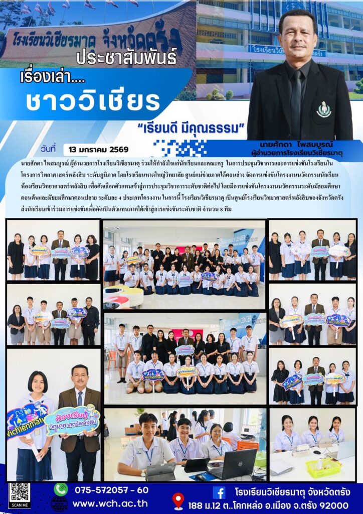 การประชุมวิชาการกลุ่มห้องเรียนวิทยาศาสตร์พลังสิบ February 9, 2026February 9, 2026 admin ร่วมเป็นกำลังใจให้นักเรียนเข้าร่วมการแข่งขันในการประชุมวิชาการกลุ่มห้องเรียนวิทยาศาสตร์พลังสิบ