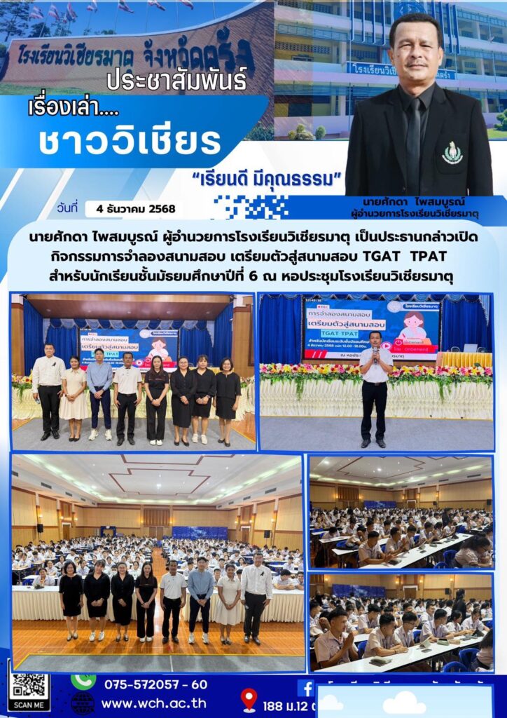 นายศักดา ไพสมบูรณ์ ผู้อำนวยการโรงเรียนวิเชียรมาตุ เป็นประธานกล่าวเปิดกิจกรรมการจำลองสนามสอบ เตรียมตัวสู่สนามสอบ TGAT TPAT สำหรับนักเรียนชั้นมัธยมศึกษาปีที่ 6 ณ หอประชุมโรงเรียนวิเชียรมาตุ