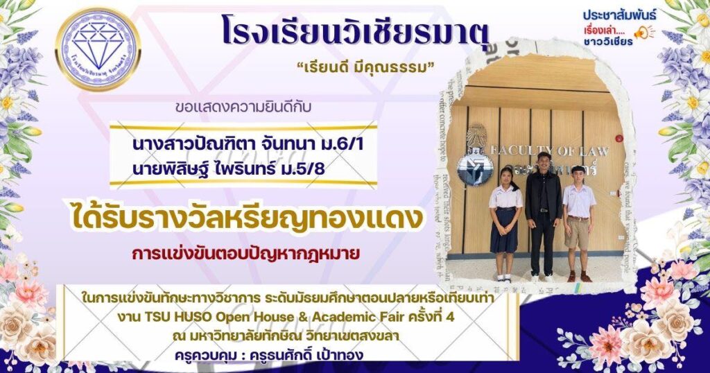ในการแข่งขันทักษะทางวิชาการ ระดับมัธยมศึกษาตอนปลายหรือเทียบเท่า งาน TSU HUSO Open House & Academic Fair ครั้งที่ 4 ณ มหาวิทยาลัยทักษิณ วิทยาเขตสงขลา