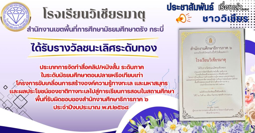 โรงเรียนวิเชียรมาตุได้รับรางวัลชนะเลิศระดับทองประเภทการจัดทำสื่อคลิป/หนังสั้น ระดับภาค