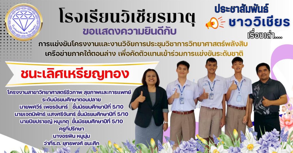 🏆ชนะเลิศเหรียญทอง โครงงานสาขาวิทยาศาสตร์ชีวภาพ สุขภาพและการแพทย์ ระดับมัธยมศึกษาตอนปลาย