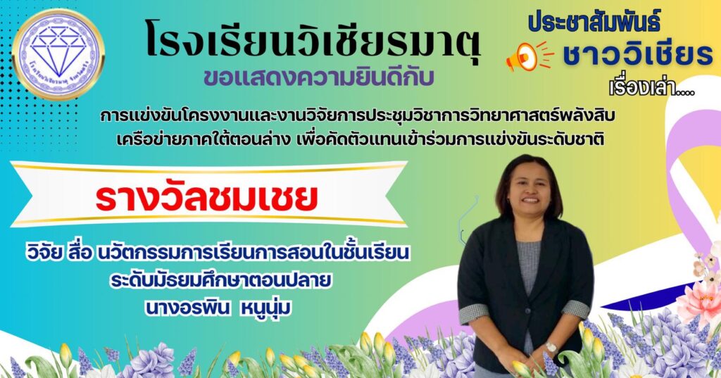 รางวัลชมเชยวิจัย สื่อ นวัตกรรมการเรียนการสอนในชั้นเรียน ระดับมัธยมศึกษาตอนปลาย February 9, 2026February 9, 2026 admin รางวัลชมเชยวิจัย สื่อ นวัตกรรมการเรียนการสอนในชั้นเรียน ระดับมัธยมศึกษาตอนปลายนางอรพิน หนูนุ่ม